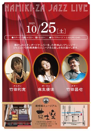道頓堀ミュージアム並木座では、「Namiki-za JAZZLIVE」が開催されます。