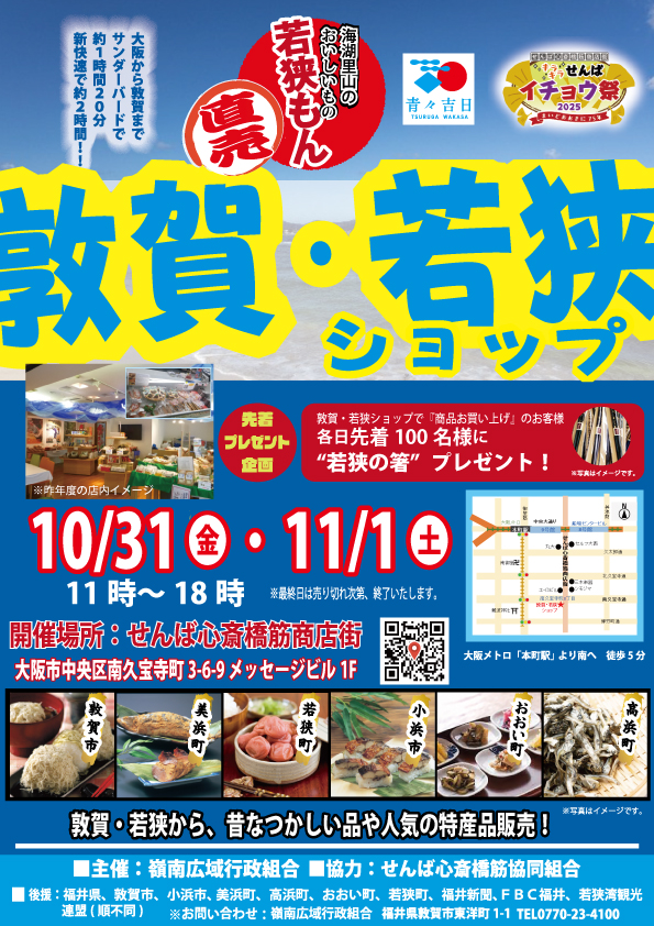 せんば心斎橋筋商店街 メッセージビル1階では、「敦賀・若狭ショップ」が開催されます。