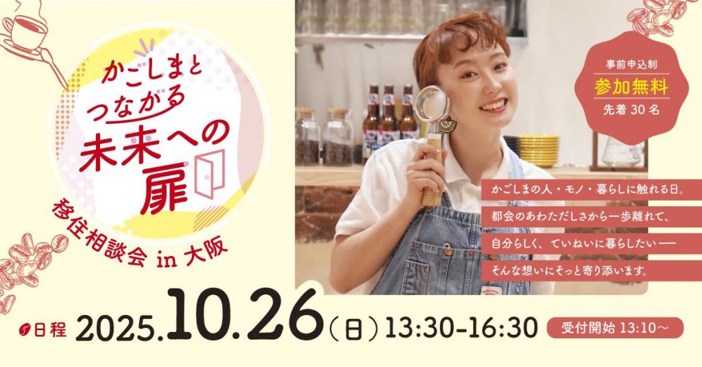 そんな想いにそっと寄り添います。大阪から鹿児島にUターンし、自分らしい暮らしを実現した先輩移住者ゲストが登場します。当日は、県内各地の市町村担当者も参加!移住のリアルや気になる地域の情報を直接聞くことができるチャンスです。