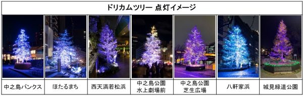 中之島及びその周辺の各ドリカムツリー7ヶ所(大阪市中央区、北区、福島区)
