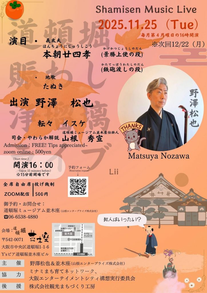 道頓堀ミュージアム並木座では、「道頓堀賑わし浄瑠璃ライブ」が開催されます。