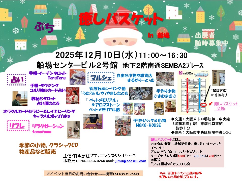 船場センタービル2号館・SEMBA2プレースでは、「癒しバスケット in 船場」が開催されます。