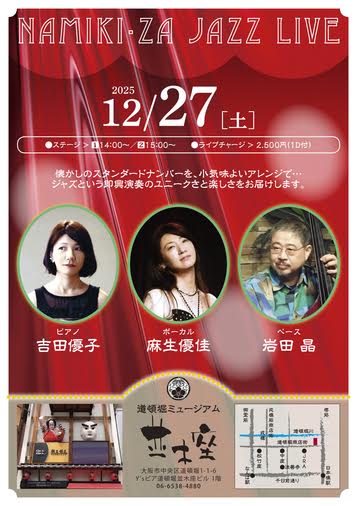 道頓堀ミュージアム並木座では、「Namiki-za JAZZLIVE」が開催されます。