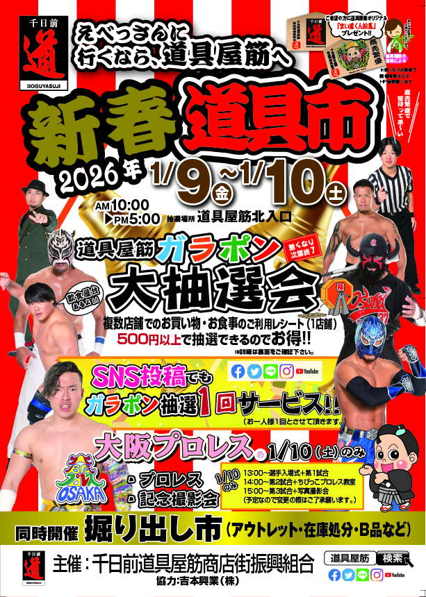 また、1月10日土曜日限定で「大阪プロレス」のイベントが開催され、迫力ある試合と記念撮影会が予定されています。
