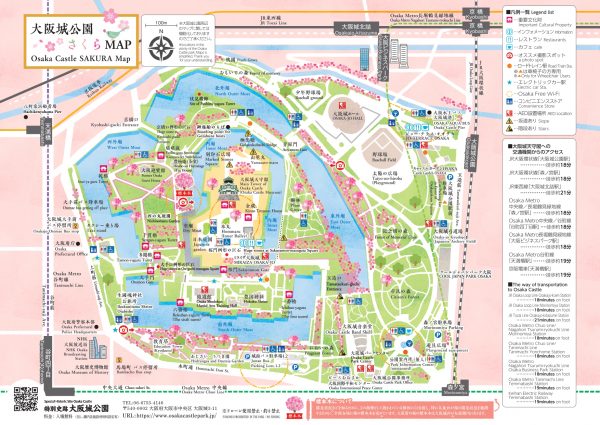 一方、玉造口には遅咲きの八重桜が植えられており、桜のシーズンの最後まで花を楽しむことができます。
