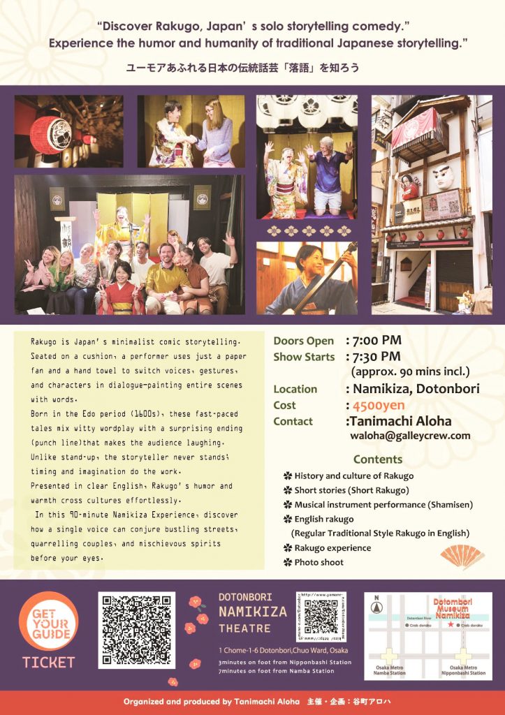 道頓堀ミュージアム並木座では、谷町アロハ企画・主催「英語落語」が開催されます。