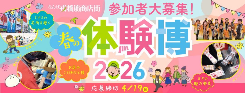 戎橋筋商店街では、「なんば戎橋商店街 春の体験博2026」が開催されます。