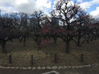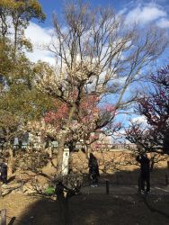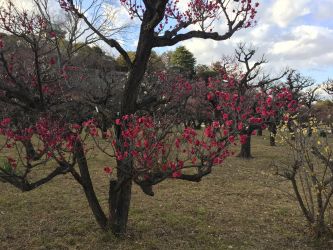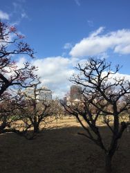 大阪城の内濠東側で、 100品種約1,200本を超える梅を見ることができます。